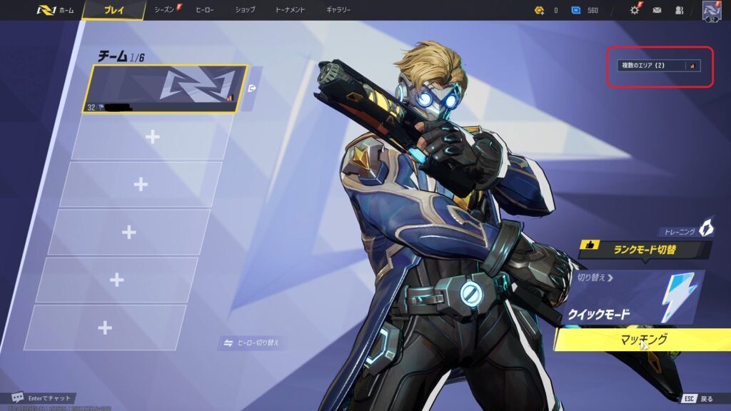 サーバー選択の方法はホーム画面右上の接続エリア選択から行えます。