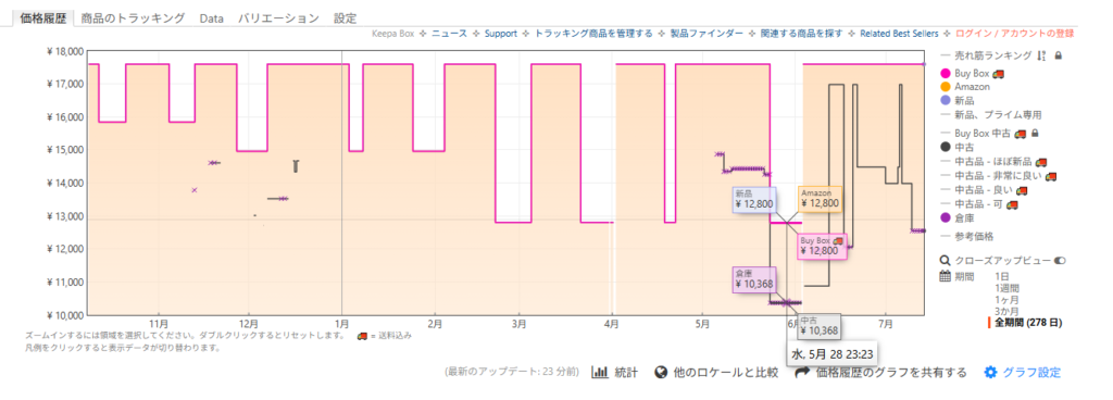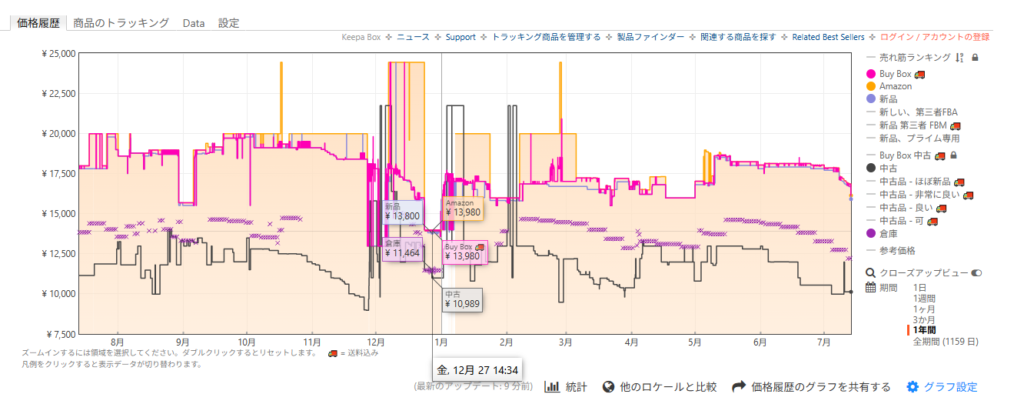 ・過去最安値13,800円から約1000円安い13,980円(21%off)