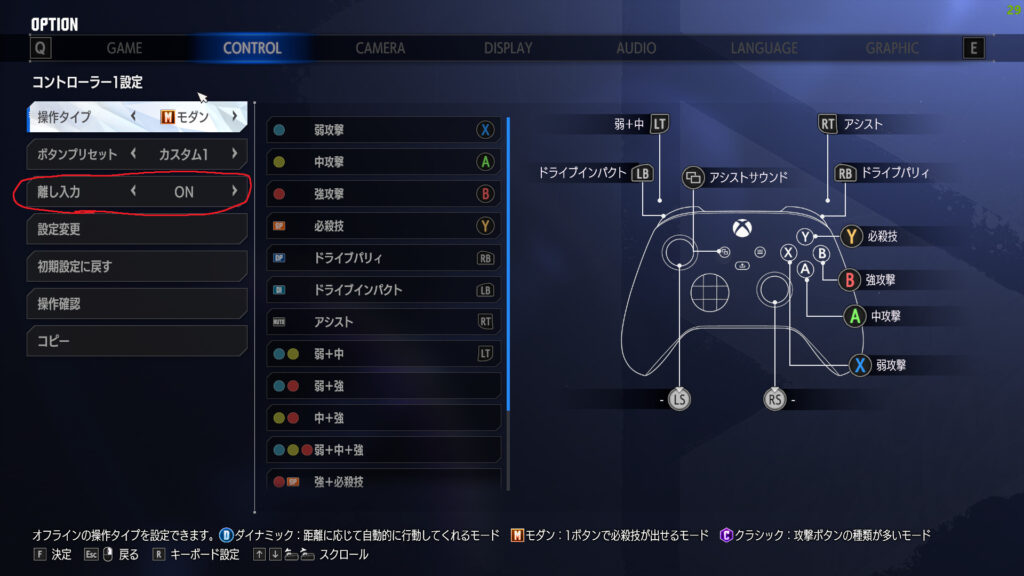 ※連打をするような判定になるため、自分が思っていない入力になり技が暴発することもあるため、基本的には、好みやボタンの押し方の癖にもよるのでONとOFFで試して、自分に合わないと思えばOFFでもいいです。